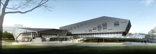 會(huì)堂、食堂、體育館東透視圖