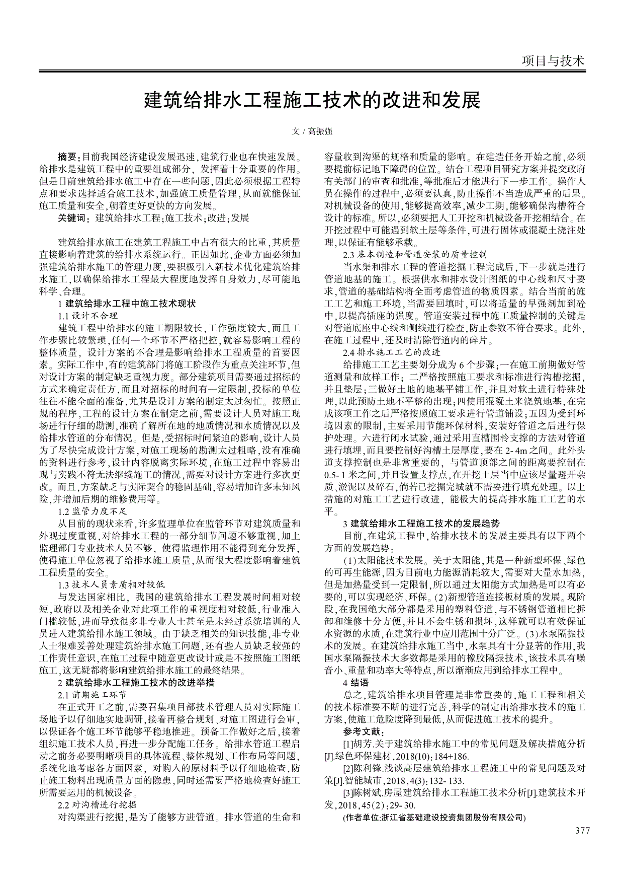 《建筑給排水工程施工技術(shù)的改進和發(fā)展》——臺州技師學院項目部 高振強