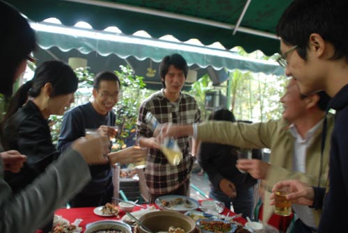 為增進(jìn)同事間的情誼,使彼此更加熟悉,公司在這一日組織了一次茶話聚餐。坐著竹藤椅,喝著龍井茶。在綠意環(huán)繞之下,大伙心態(tài)極其輕松,其樂融融。
