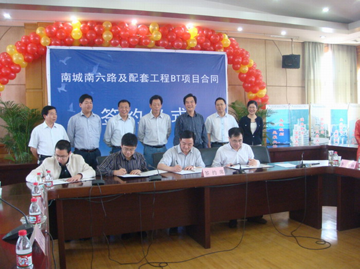 2. 麗水市領(lǐng)導及相關(guān)部門負責人見證了南城南六路及配套工程BT項目合同簽約儀式。