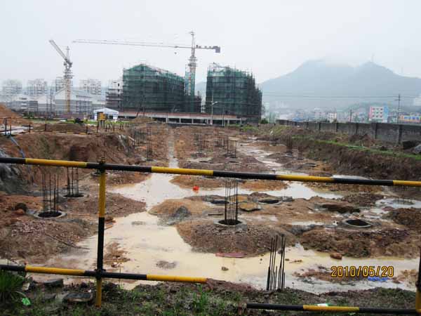 目前,其余各施工段(共五施工段)進(jìn)展情況具體如下:第一施工段三層樓面砼已完成,第二、三施工段二層樓面砼已完成,第四施工段二層樓面正進(jìn)行模板安裝施工。其他單體工程進(jìn)度為:1#學(xué)生宿舍樓基礎(chǔ)部分人工挖孔樁砼已澆筑完成;3#學(xué)生宿舍樓基礎(chǔ)土方已開挖完成;食堂基礎(chǔ)土方開挖施工;風(fēng)雨操場(chǎng)臨時(shí)圍墻已砌筑完成。