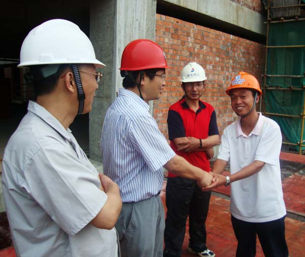 胡總(左二)親切慰問現(xiàn)場施工管理人員